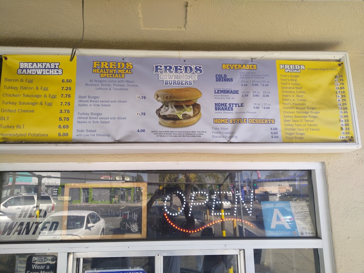Welcome to Fred's Downhome Burgers, a delightful hamburger haven located at 2524 W Slauson Ave, Los Angeles. This beloved eatery specializes in a mouthwatering array of burgers, breakfast sandwiches, and burritos, all crafted with fresh ingredients and homestyle flair.